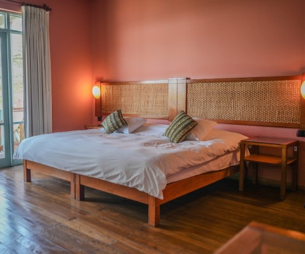 Choose between ground-level rooms with direct access to the lush garden, or first-floor accommodations with a private balcony, perfect for checking the surf at sunrise. All rooms are designed to be spacious, comfortable, and serene, offering the perfect retreat after a day on the waves.